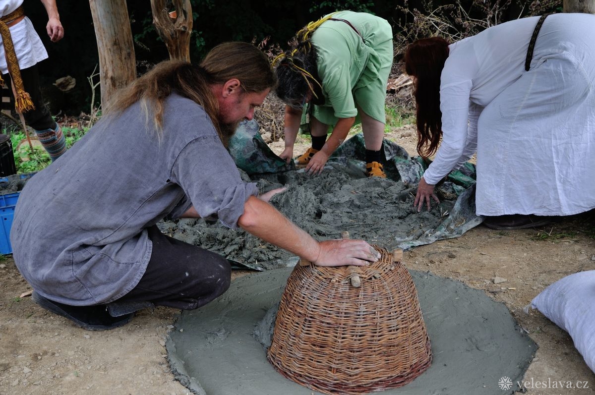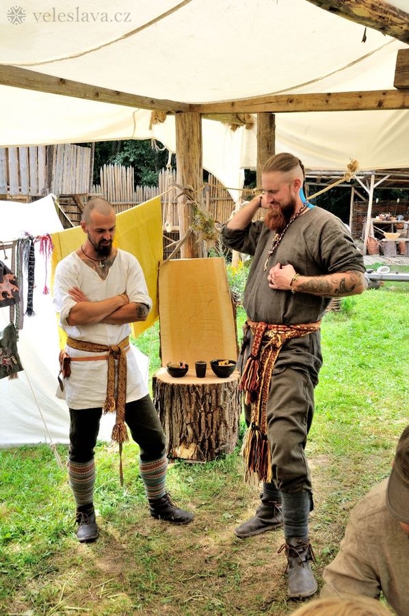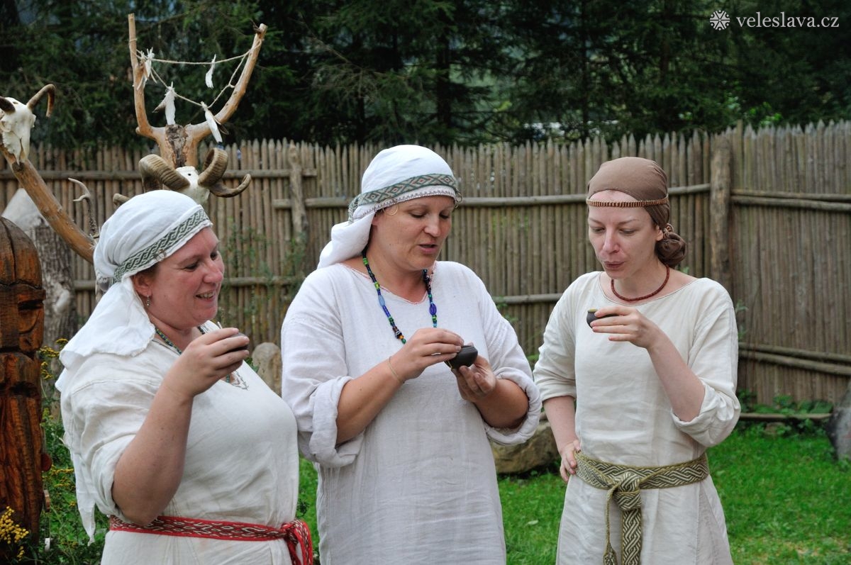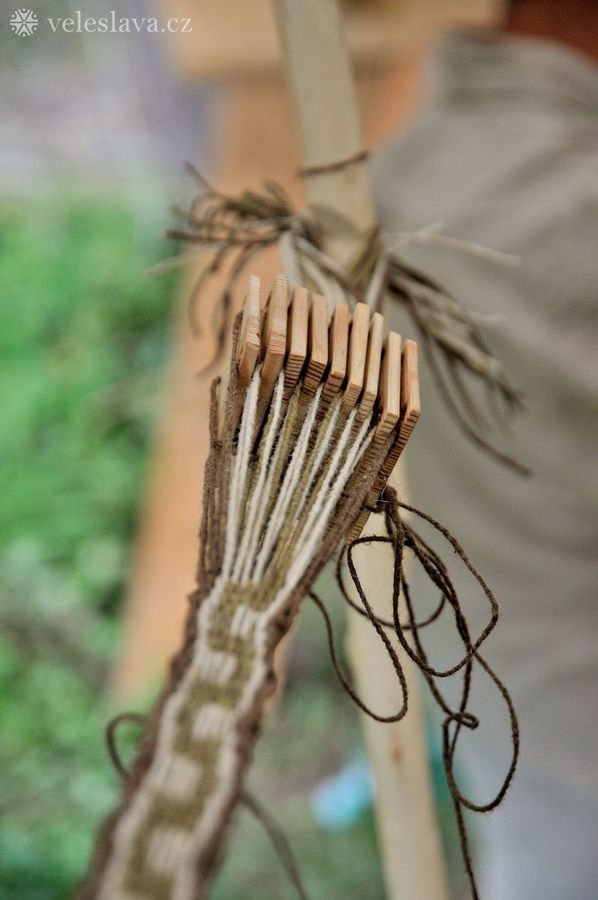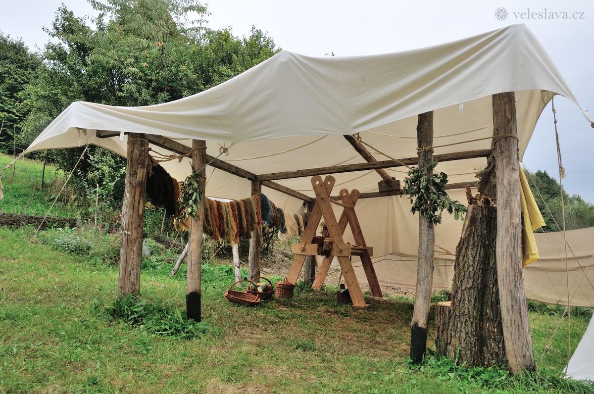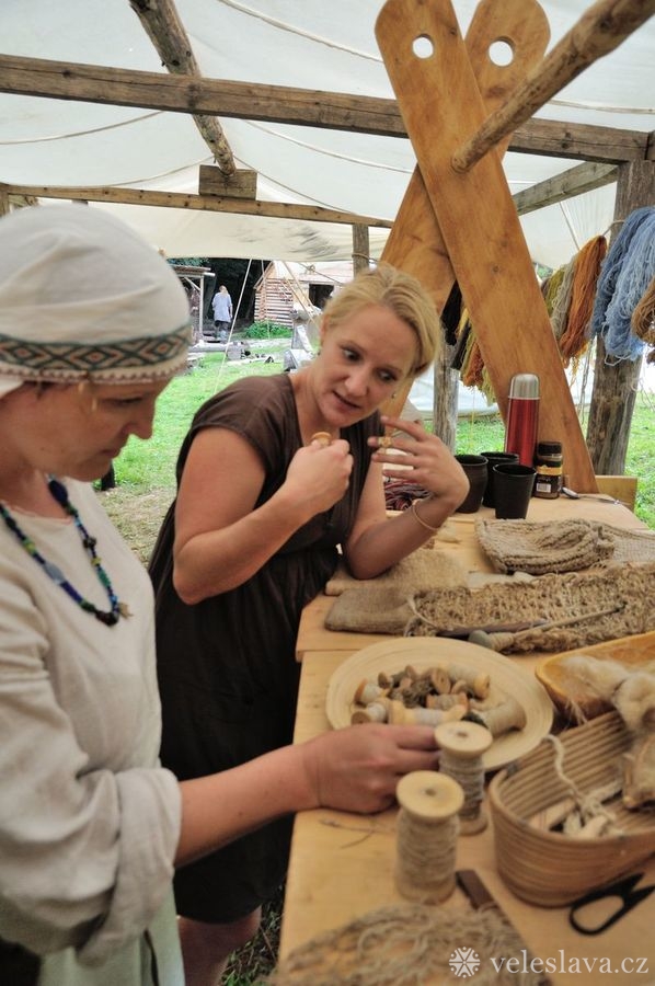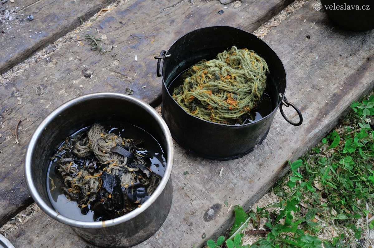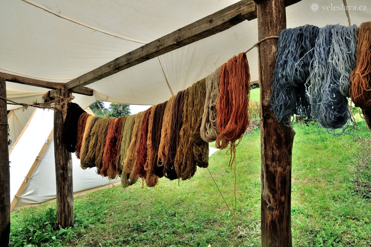 Kromě oddechu od běžných „civilních“ povinností měl každý možnost si vyměnit nejen řemeslné zkušenosti hned s několika šikovnými lidmi. Já například přihlížela a čerpala informace jak u barvení vlny, tak u výroby dřevěných nádob, stejně tak u stavění pece, u tkaní na vertikálním stavu a zejména pak u zpracování kopřivy na vlákno. O kopřivě přijeli povídat jedni z nejpovolanějších – tým z Muzea Novojíčínska – CETRAT Příbor. Vyzkoušela jsem si třeba také to, že předení vážně není tak snadné, jak to vypadá, když to dělají lidé, kteří to umějí. 😉
