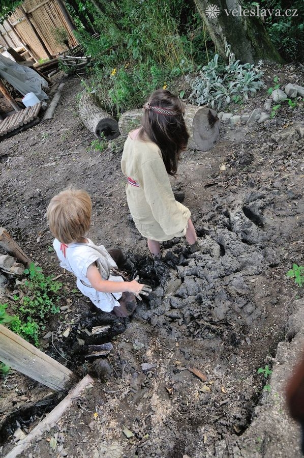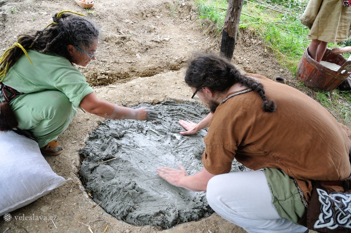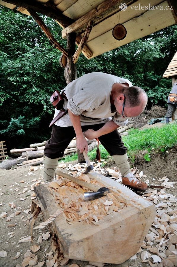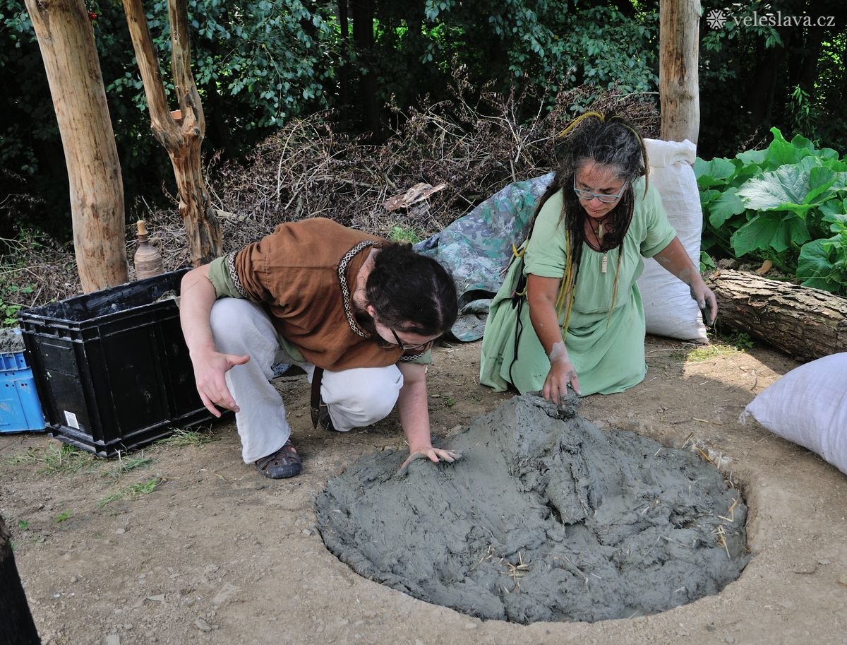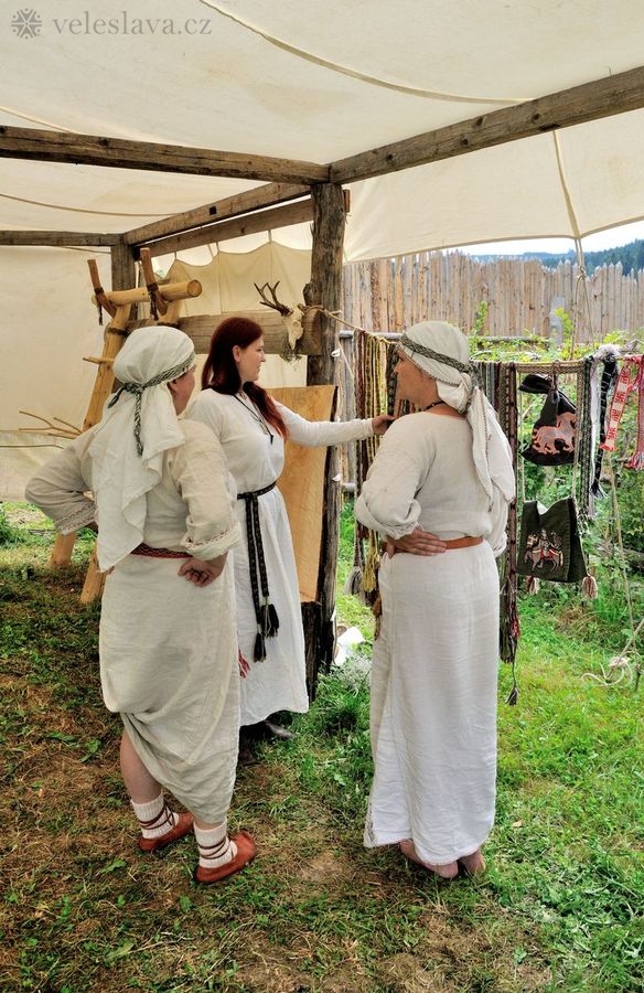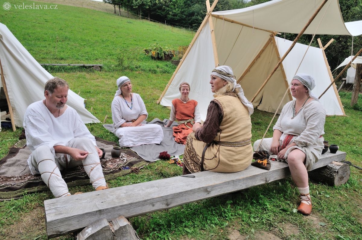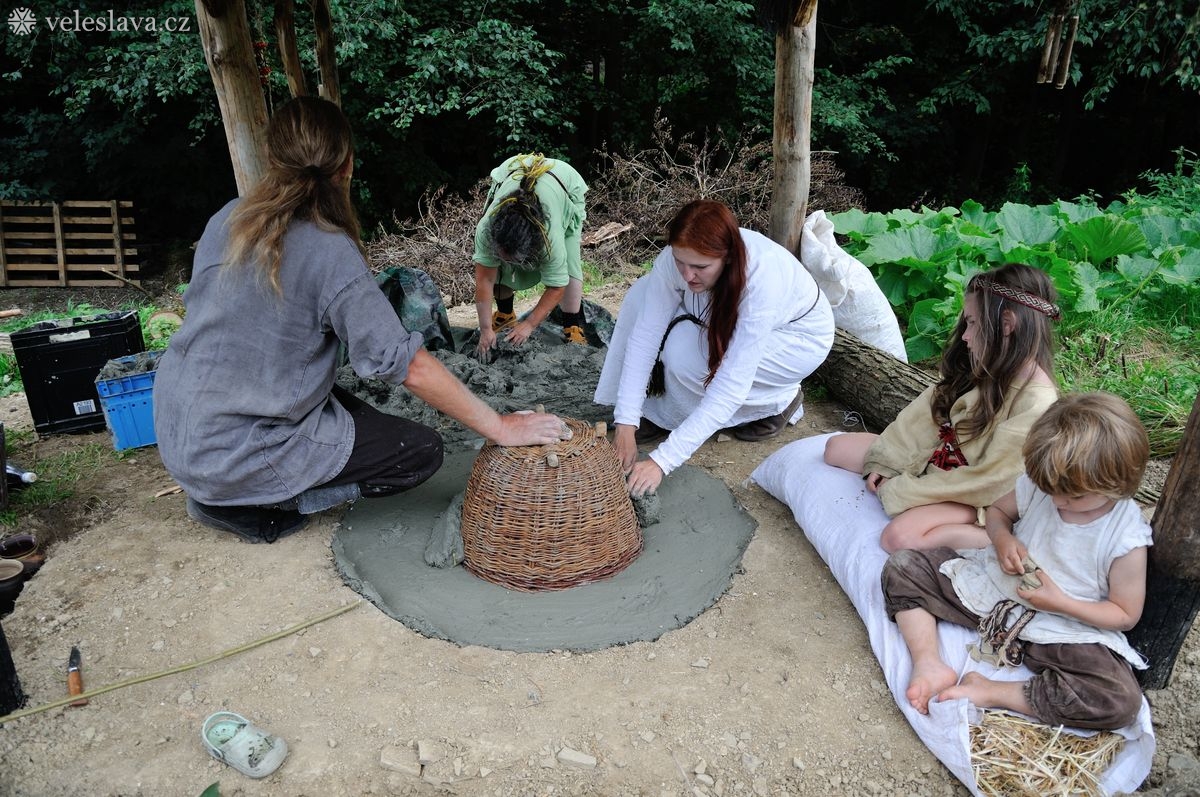 Kromě oddechu od běžných „civilních“ povinností měl každý možnost si vyměnit nejen řemeslné zkušenosti hned s několika šikovnými lidmi. Já například přihlížela a čerpala informace jak u barvení vlny, tak u výroby dřevěných nádob, stejně tak u stavění pece, u tkaní na vertikálním stavu a zejména pak u zpracování kopřivy na vlákno. O kopřivě přijeli povídat jedni z nejpovolanějších – tým z Muzea Novojíčínska – CETRAT Příbor. Vyzkoušela jsem si třeba také to, že předení vážně není tak snadné, jak to vypadá, když to dělají lidé, kteří to umějí. 😉